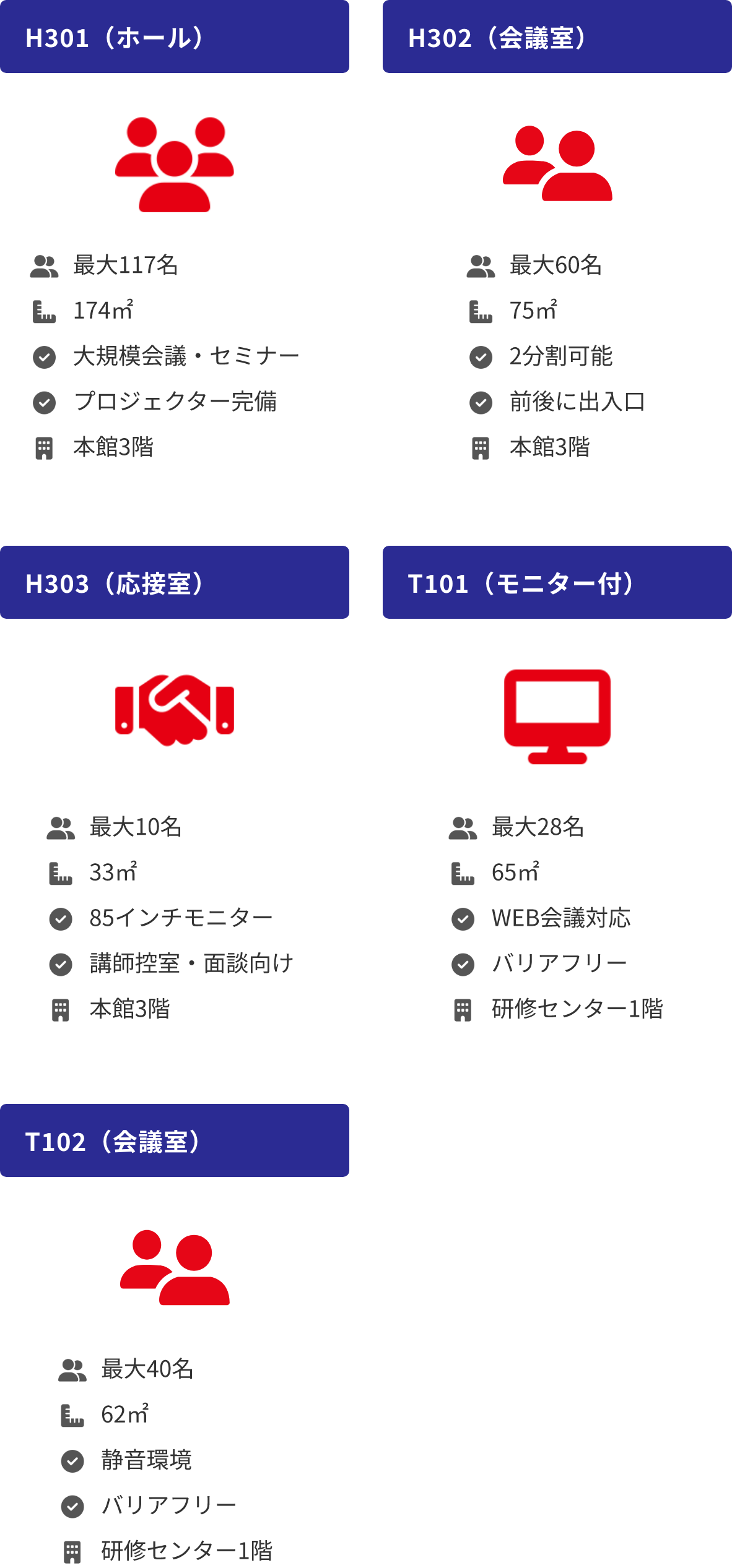 - トヨタの会議室は幅広い人数規模・目的に対応しながら、準備しやすい標準設備と柔軟な料金体系で、あらゆるニーズにお応えします。