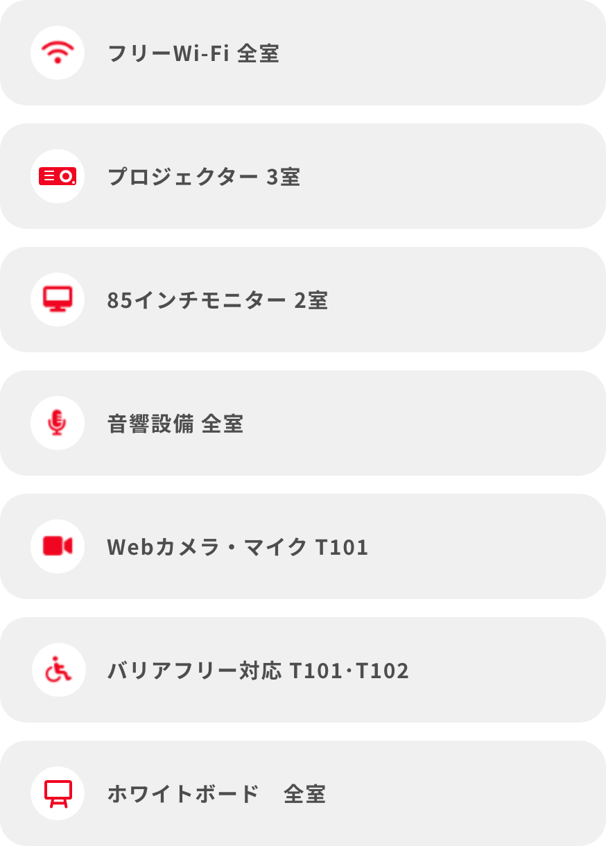 - プロジェクター・Wi-Fi・Webカメラなど設備充実